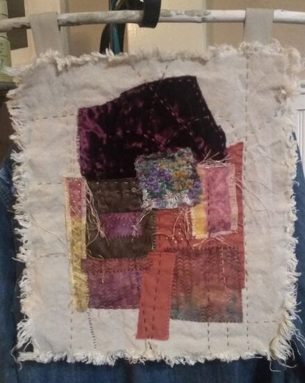 Cotton and mixed fabric on linen. Hand stitched. 17" x 13"
